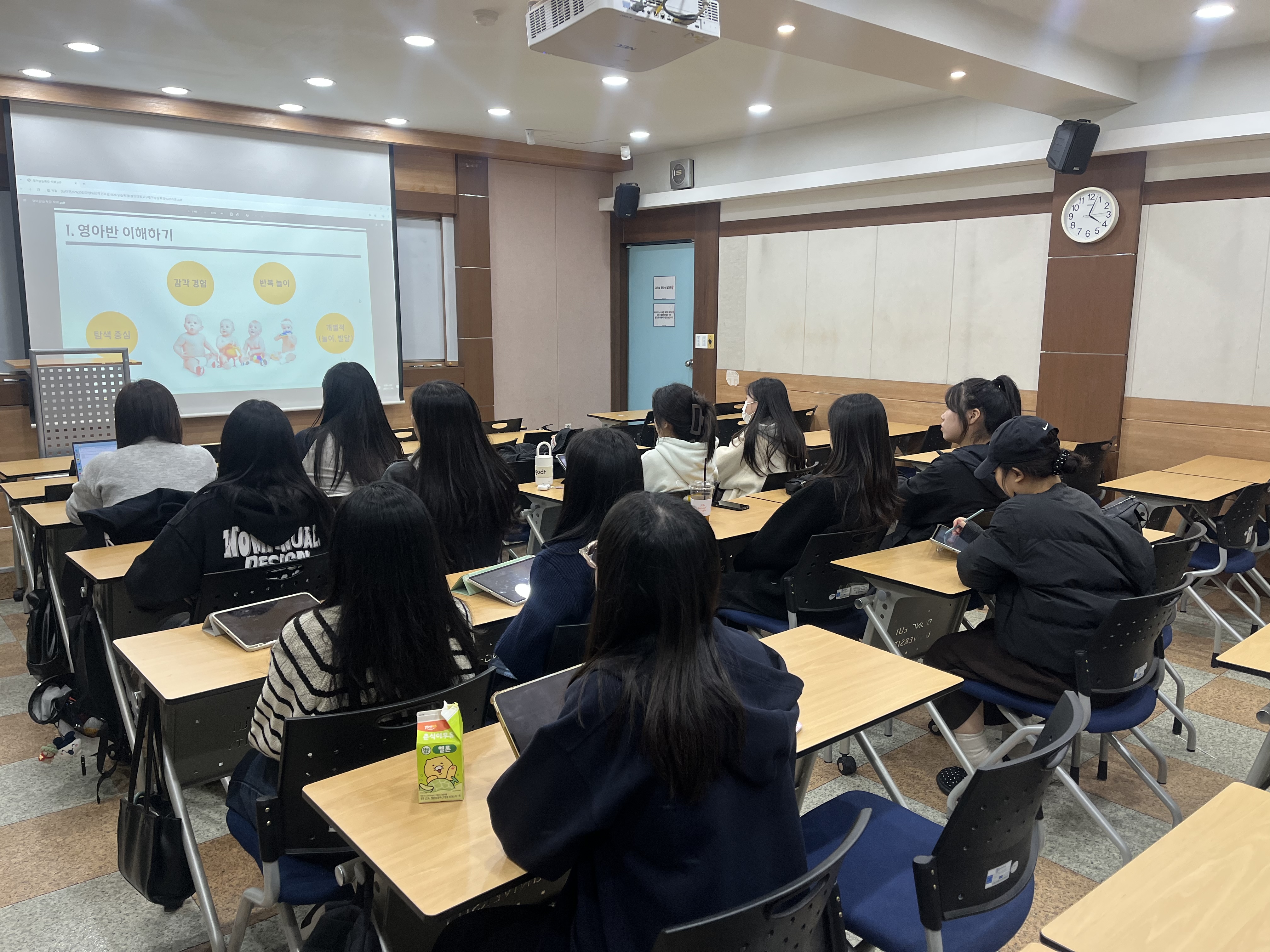 2025학년도 보육실습 준비 특강 1회차가 실습을 앞둔 3학년 학생들을 대상으로 진행되었습니다. 이번 특강은 예비 보육교사로서의 기본 소양을 함양하고, 보육실습 전 사전 준비사항 및 실습 수행 절차를 이해하도록 돕기 위해 마련되었습니다. 특강에서는 보육실습의 전반적인 운영 방식과 기관 선정 및 배정 과정, 실습일지 작성 요령, 실습생의 자세와 유의사항 등을 중심으로 안내하였으며, 실제 보육현장에서 필요한 기본 역량과 전문적 태도에 대해서도 함께 다루었습니다. 학생들은 특강을 통해 실습에 대한 구체적인 이해를 높이고, 보육현장에 나가기 전 필요한 준비사항을 점검할 수 있었습니다. 또한 실습 과정에서 발생할 수 있는 다양한 상황에 대한 대처 방법과 실무 예절 교육을 통해 현장 적응력을 강화하는 시간을 가졌습니다.