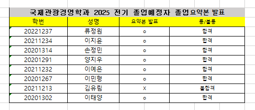 [공지] [국제관광경영학과] 2025 전기 졸업 졸업논문 요약본 발표 결과 통보 및 졸업 시험 일자 변경